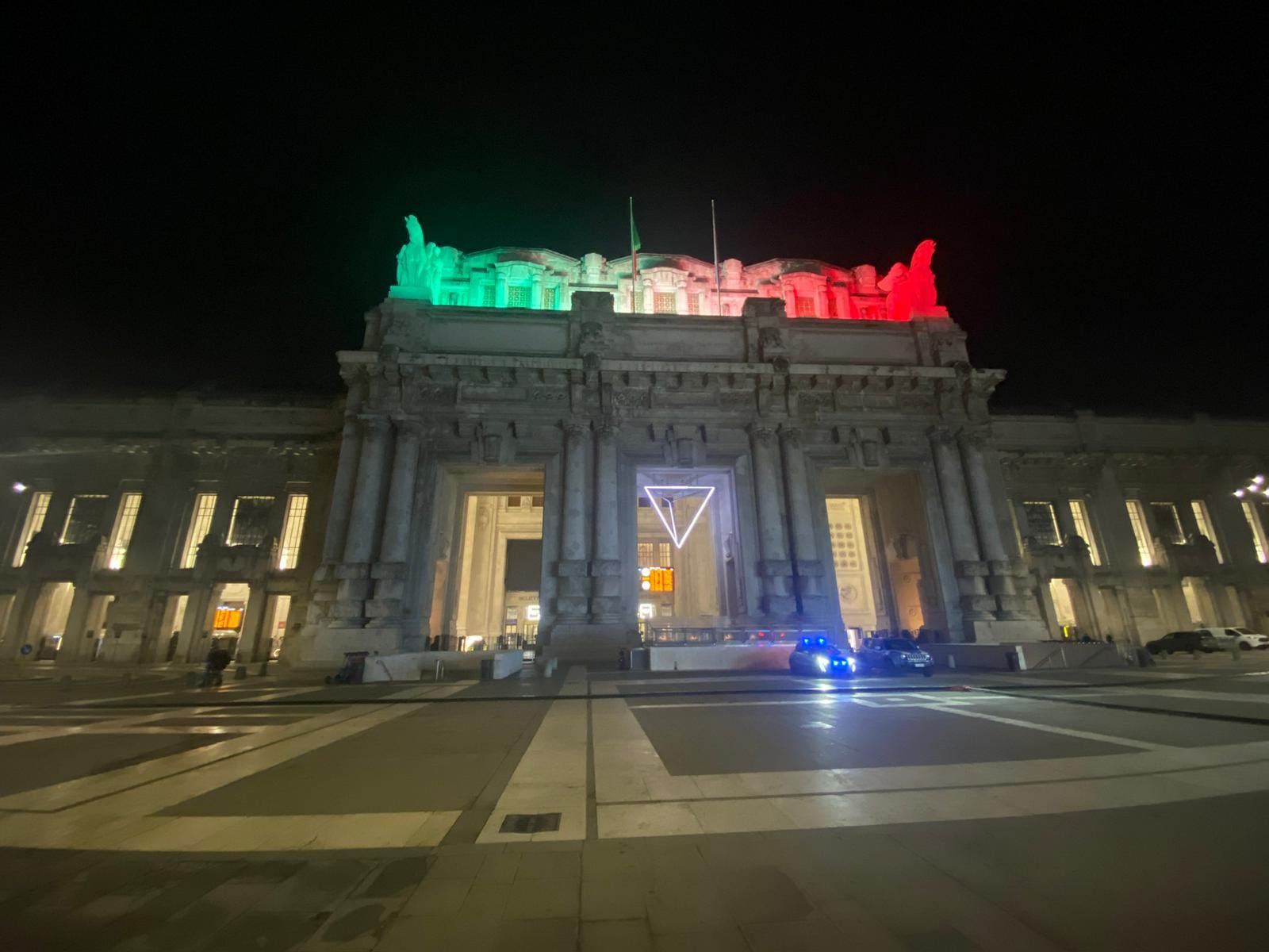 Da ich an diesem Tag einen Seitenausgang des Bahnhofgebäudes wähle, werde ich erst wenige Tage später den Anblick des Haupteingangs bei Nacht bewundern dürfen. Die Beleuchtung in den Farben der Flagge darf natürlich nicht fehlen.