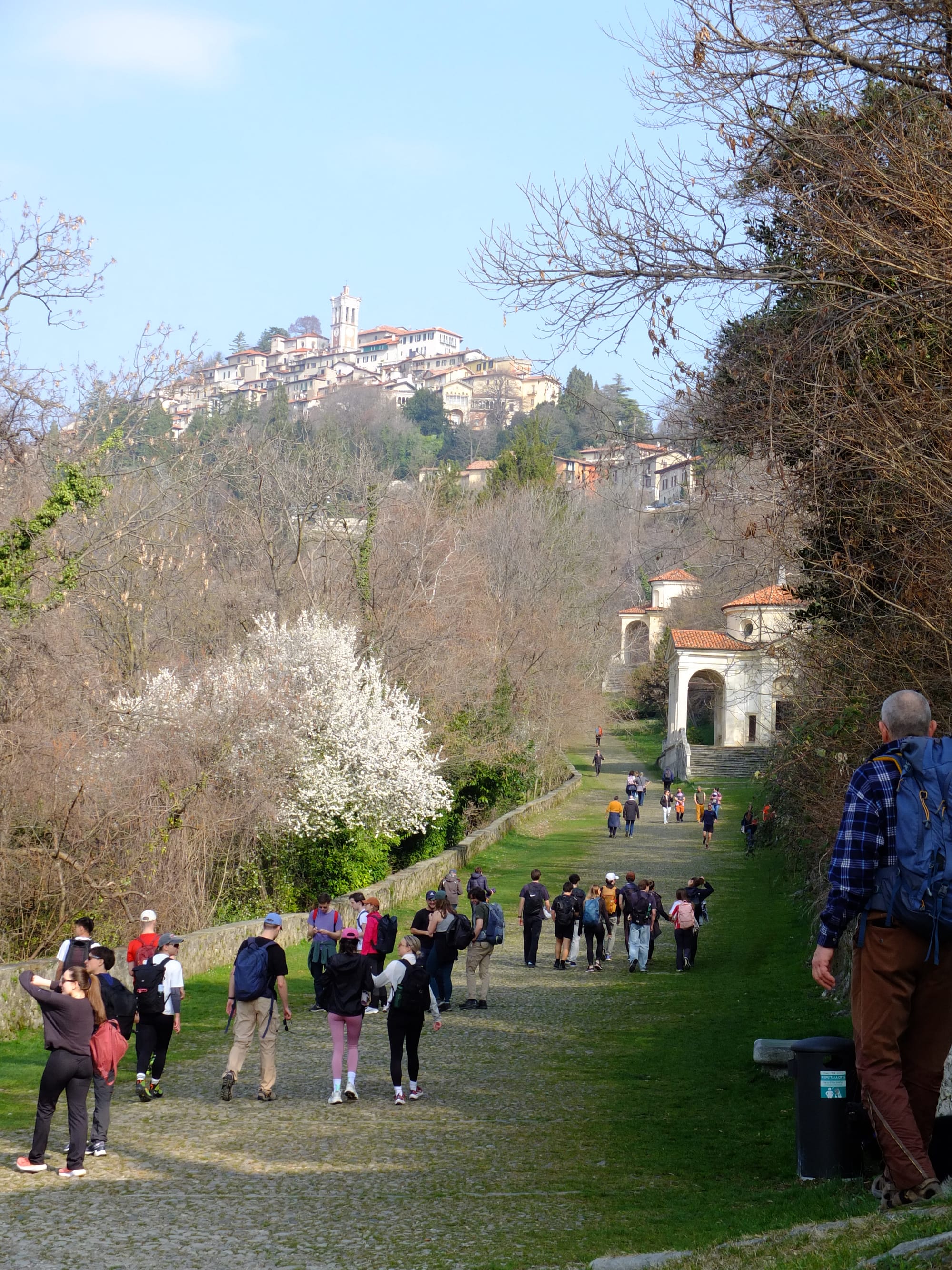 Der Weg dorthin ist ein berühmter Pilgerweg (Viale delle Cappelle) und gut 2 km lang. Immer bergauf geht es vorbei an den insgesamt 14 Kapellen.